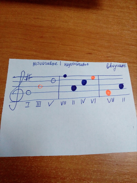 Добрый день! Начался учебный год, и я снова за помощью) Задание: указать устойчивые, неустойчивые и вводные ступени в соль мажоре. То, что оранжевым цветом, уже было указано. Не могу понять, почему отличаются седьмая вводная и неустойчивая ступени. Они не должны совпадать?  И еще можете посоветовать какую-нибудь литературу типа "Сольфеджио для чайников". А то чем дальше, тем все меньше и меньше я понимаю(