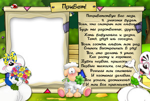 Страничка-приветствие в альбом Спасибо авторам всех использованных элементов Отредактировано: mama-Vladi в 17 мая 2011, 21:02