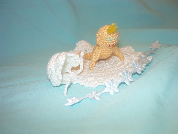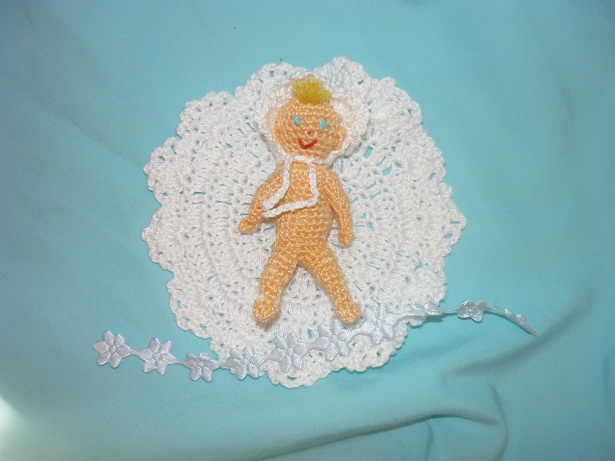 FRAGONAR супер! Поздравляю с прибавлением мальчика(ленточка голубая!)!  Ты в подарок вяжешь? И малышик и корзиночка ,умничка здорово получается!  Ой а малышик какой класснючий, прям ювелирная работа! Отредактировано: Иринка Малкова в 1 авг 2010, 15:33