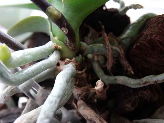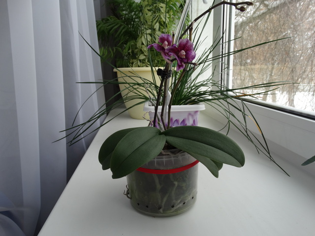 Кстати, про старые цветоносы, сегодня пришло время поливать мою страдалицу, достала ее с пакета, а таам на самом последнем цветоносе проснулось 2 почки (перед упаковкой я им всем подрезала верхушки), похоже это цветочные почки  Сама орхидея тоже явно чувствует себя лучше, зазеленела, листья наливаются  Вот вам и пойми эту красавицу! Сколько она натерпелась моих экспереметнов по уничтожению улучшению качества ее жижни, а все живет, еще и цветеами меня одаривает, да детей растит