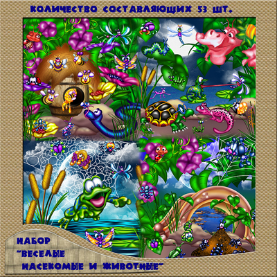 Отрисовала новый набор "Веселые насекомые и животные" Количество составляющих получилось 53 шт. Подробно в дневе