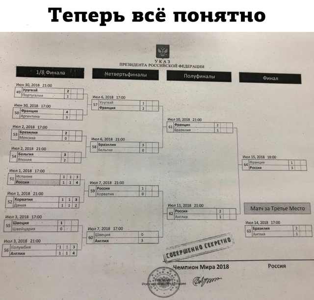 Чемпионат мира по футболу 2018 в России., Часть 3, впереди 1/4, 1/2 и финал