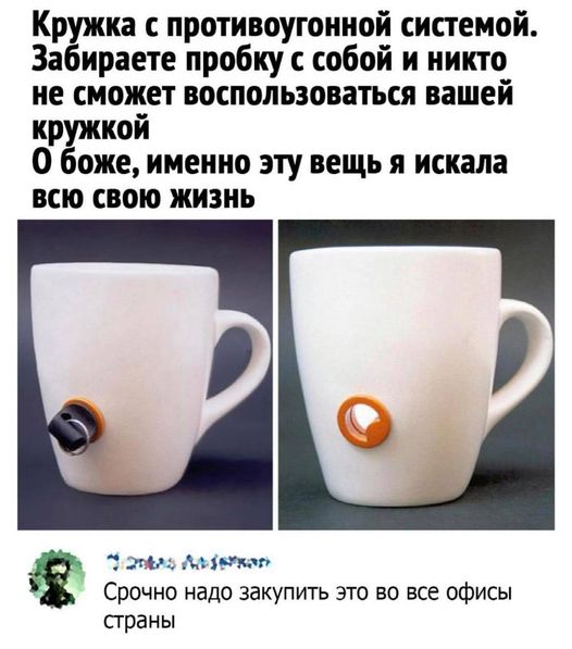 Работает, пока кто-нибудь не завёл себе затычку У моих коллег пока таких чашек нет. Я буду продвинутый юзер в этом смысле. Теперь чашку бы такую найти.