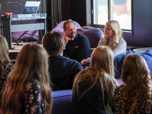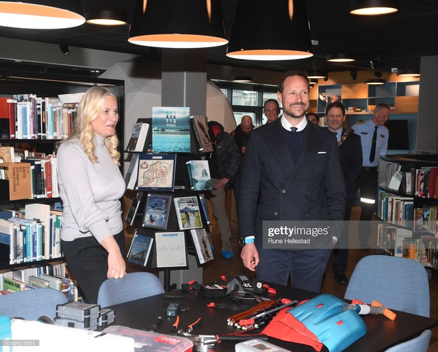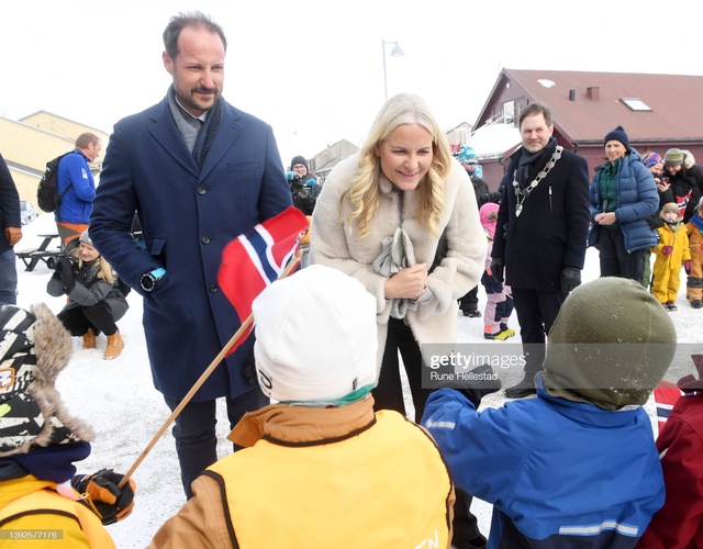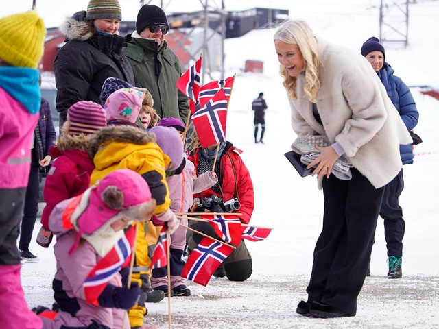 Сегодня днем Их Королевские Высочества прибыли в самую северную часть Норвегии 🥶, где были радостно встречены детишками 👦👧 возле публичной библиотеки 📚 Лонгйира.