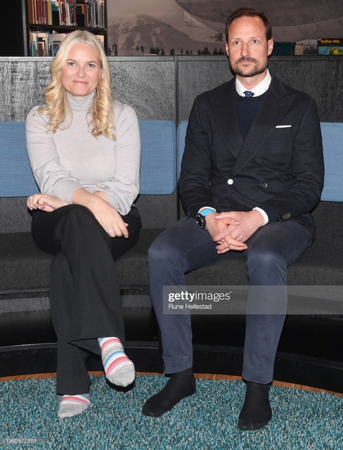 При входе Кронпринц Хокон и Кронпринцесса Метте-Марит соблюли давний обычай еще со времен, когда угольная пыль могла легко проникать в обувь, и оставили свои треккинговые ботинки 🥾 снаружи.